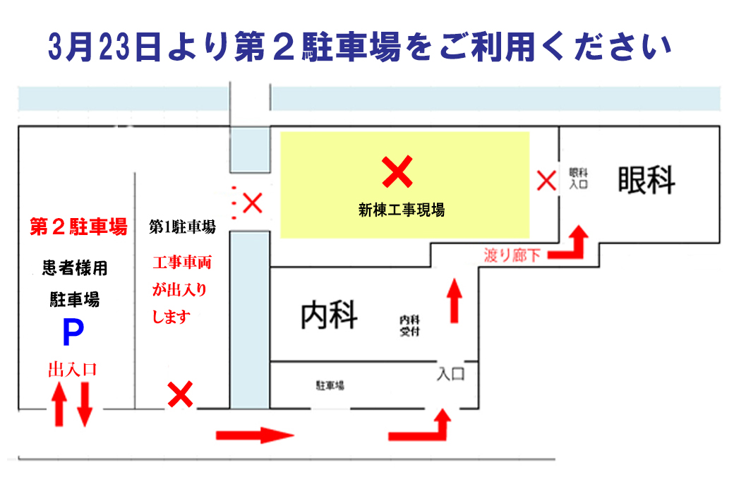 西側の「第2駐車場」をご利用の上